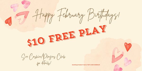 Tiered members get $10 FREE Play for their Birthday! See the Cashier/Player's Club for details.